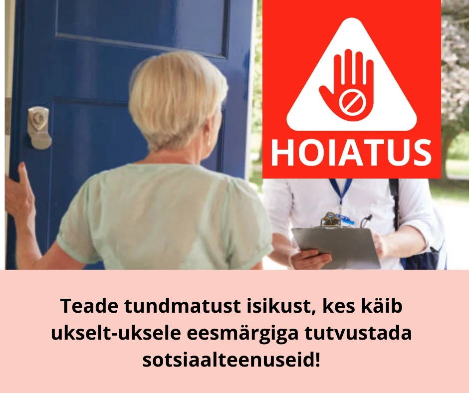 /10. veebruar 2024/ Pilt illustreeriv.Kas kelmid on leidnud uue nõksu esitledes ennast KOV töötajatena soovides tutvustada sotsiaalteenuseid? Täna, 10. veebruaril helistati mulle küsimusega: "Kas Estkeer tegeleb ka ukselt-uksele sotsiaalteenuste tutvustamisega?" Üllatus oli suur, kui räägiti juhtunust täpsemalt.